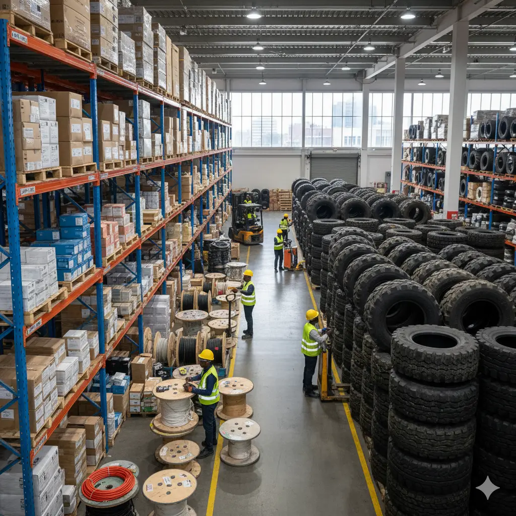 We supply specialized industrial components like a full range of tires and various electrical items, crucial for large-scale operations and infrastructure projects.